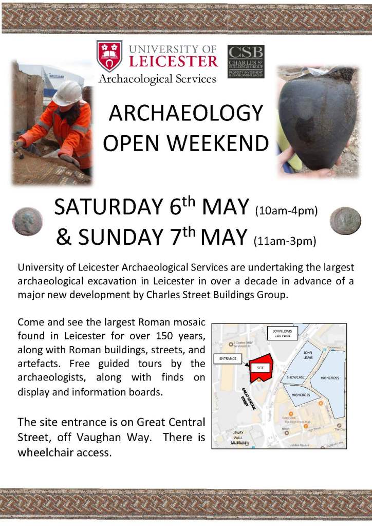 The excavation will be open to the public on Saturday 6 May, from 10am to 4pm and Sunday 7 May, from 11am to 3pm. Entrance to the site is via Great Central Street. There is wheelchair access.