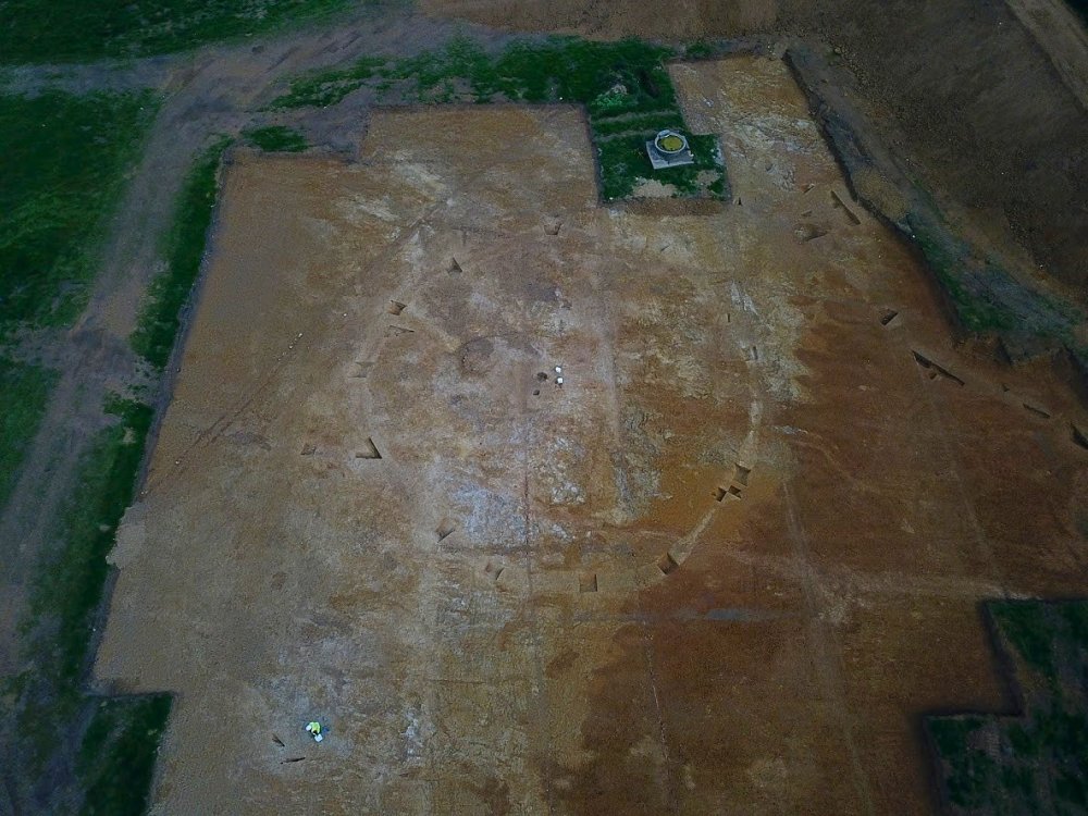 Much to our surprise, in the smaller area a previously unknown Bronze Age ring ditch was discovered. This was an unbroken circle in plan measuring 25m in diameter from inner edge to inner edge. No accompanying bank or mound was found, mostly likely lost due to medieval and post-medieval ploughing on site. A total of thirteen 1m slots were excavated across the ditch but no finds were recovered, not uncommon for this type of feature. The ditch measured between 0.9m and 1.7m in width and 0.2m to 0.6m in depth.
