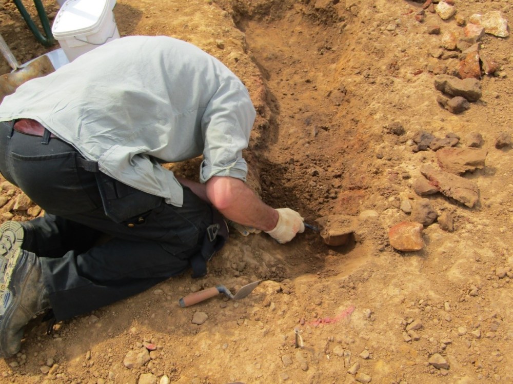 Centrally placed within the ring ditch were three cremation burials. These were un-urned but were placed in small purposefully dug pits. The burials contained evidence of cremated bone and probable pyre material. Further analysis of the burials is forthcoming and will hopefully tell us much more about the nature of the cremations.