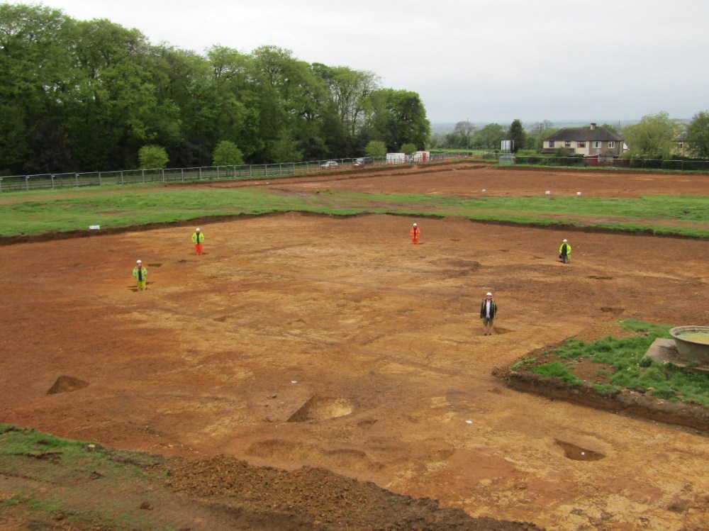 Immediately east of the ring ditch was a row of thirteen evenly spaced large oval pits, their linear arrangement suggesting they were a pit alignment. The alignment appeared to respect the ring ditch and continued beyond the development area to the south-east. A sherd of Iron Age pot was found at the base of one of the pits. Some of the pits also appeared to have been re-dug in the Roman period, suggesting the alignment was still significant at this time, perhaps marking a boundary of some form.