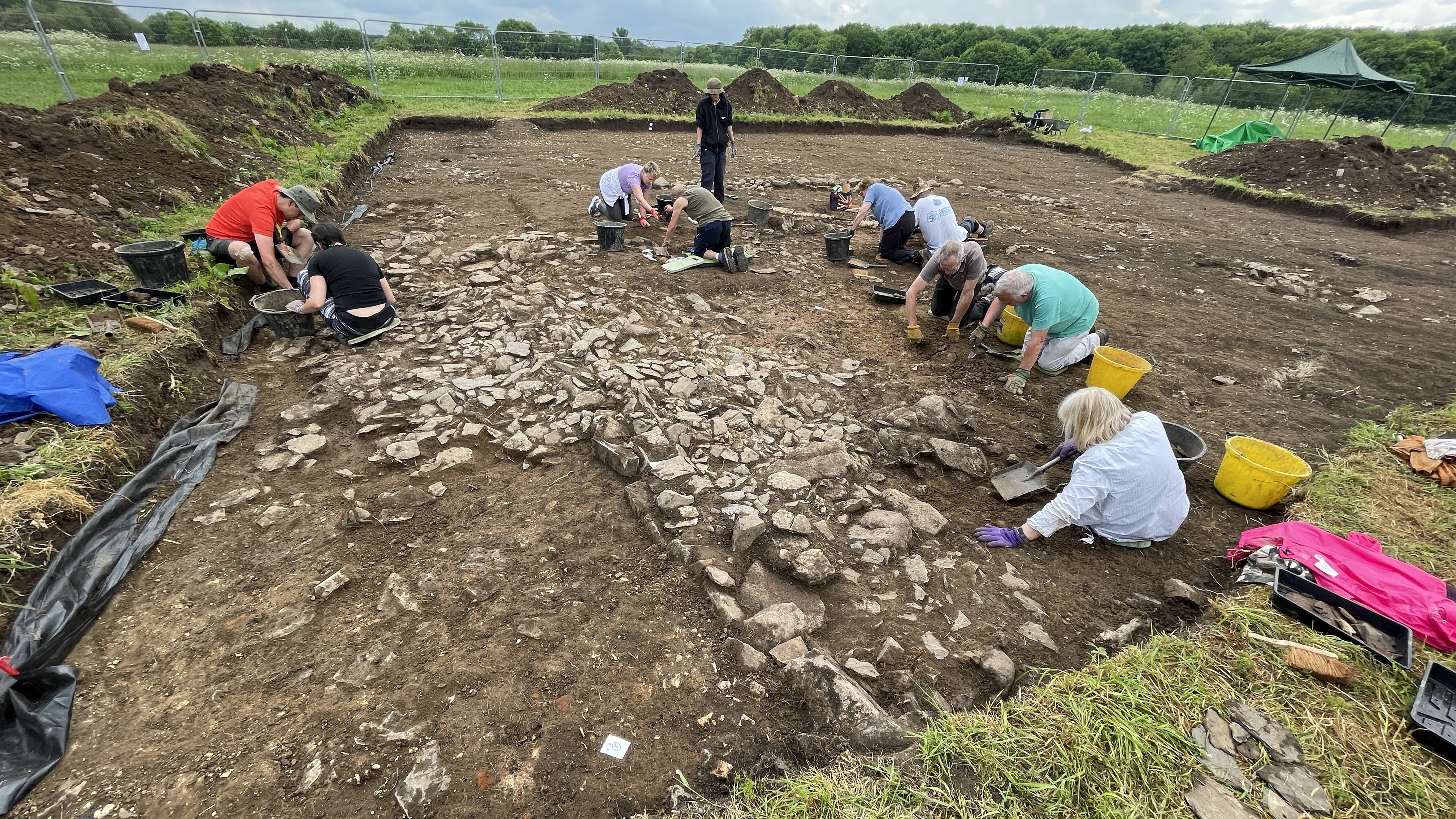 We have now been digging for six days, the 1st year archaeology students have finished their first week, we have welcomed 26 young archaeologists from the Leicestershire Young Archaeologists’ Club to site for a day’s digging and a small group of volunteers have been excavating over the weekend. This means the archaeology in our main area, where we have the southern half of the Knight Hospitallers’ ‘manor house’ is really starting to take shape.