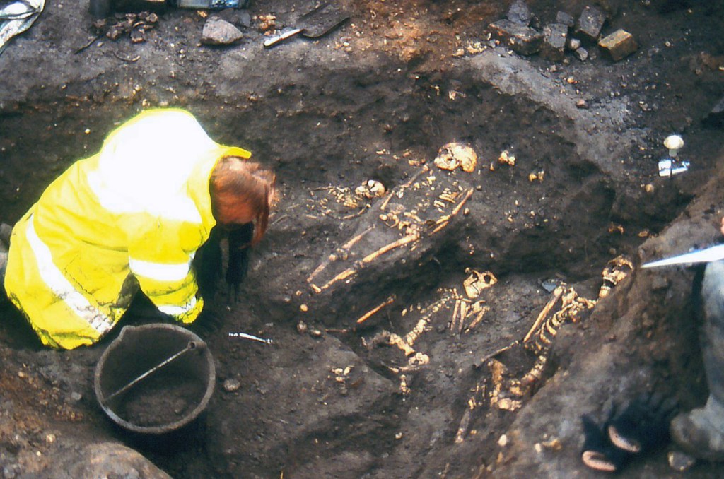 The Black Death of 1348 did not discriminate by wealth and the fear of sudden death, in one case, was evidenced by the presence a lead seal or papal bulla buried with a middle-aged woman in St Peter’s church. The bulla would have been attached to a letter of indulgence from Pope Innocent VI who was pontiff from 1352 to 62, when the plague was ravaging Europe. Other epidemics went un-named but during the 11th or 12th century, one of them took at least 22 of the parishioners, who were buried together in a communal grave.