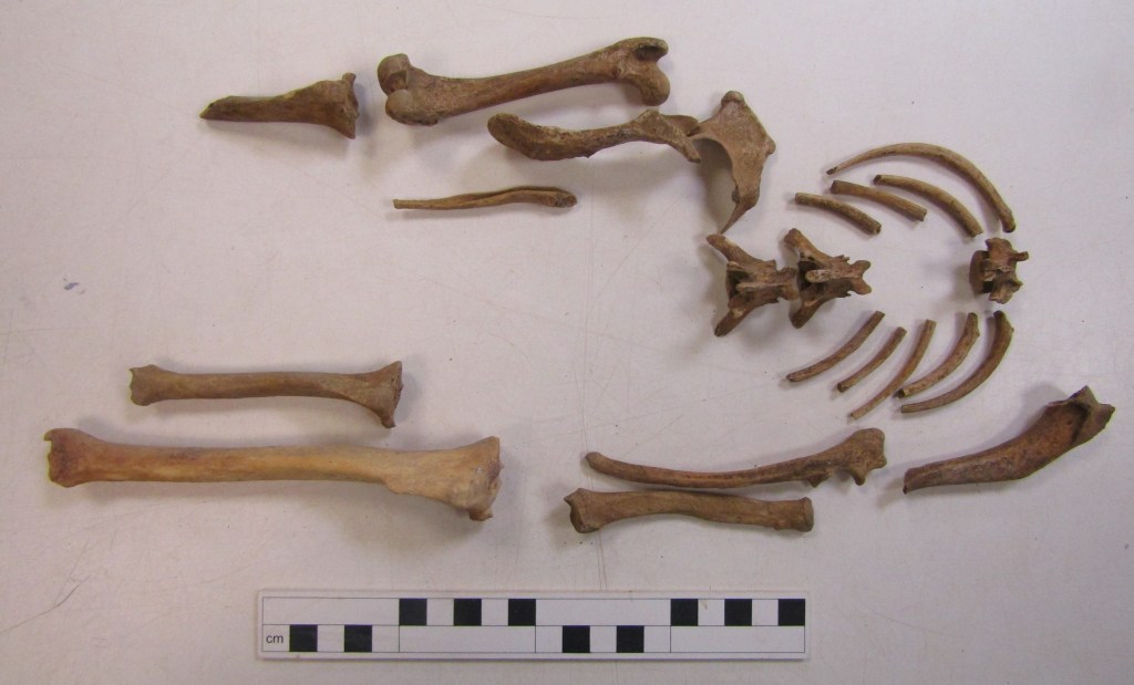 Firstly, each individual bone fragment was examined and, where possible, identified to element (which bone of the body) and species. The groups of bones from the different features were then evaluated to identify the presence of butchery marks, signs of burning, pathologies and any other alterations to the bones. This information will be used to help us learn about the lives of the animals, their relationships with people and the uses they were put to. The assessment has already revealed some exciting preliminary findings, helping us answer some of our questions about the site as well as posing new ones. Here I am going to take a look at the material from the Roman layers and highlight some of the bone groups that are helping to shed more light on this part of the site’s history.