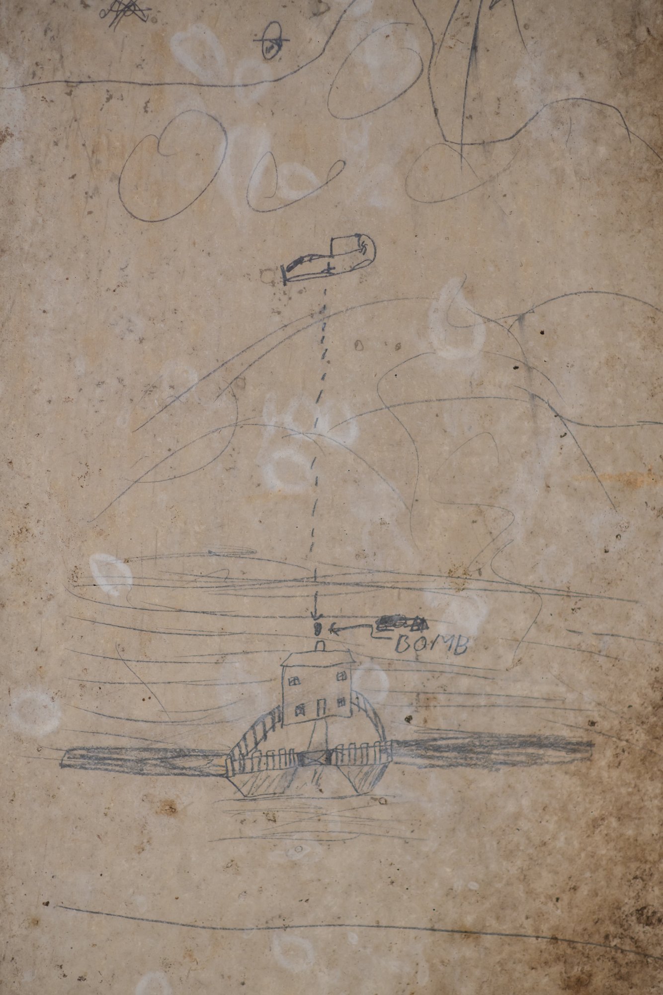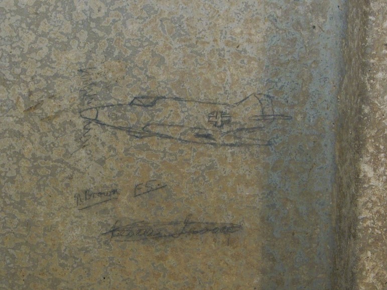 Boredom and fear must have been prevalent and are reflected in many graffiti drawings on the walls of the shelters, including names, drawings, games and simple scrawls. Most appeared to be drawn in pencil, many no doubt by bored children either taking part in a drill or during an actual air raid. Caricatures of Adolf Hitler, swastikas, images of the blitz and aeroplanes bearing German crosses can all be dated to the Second Word War.
