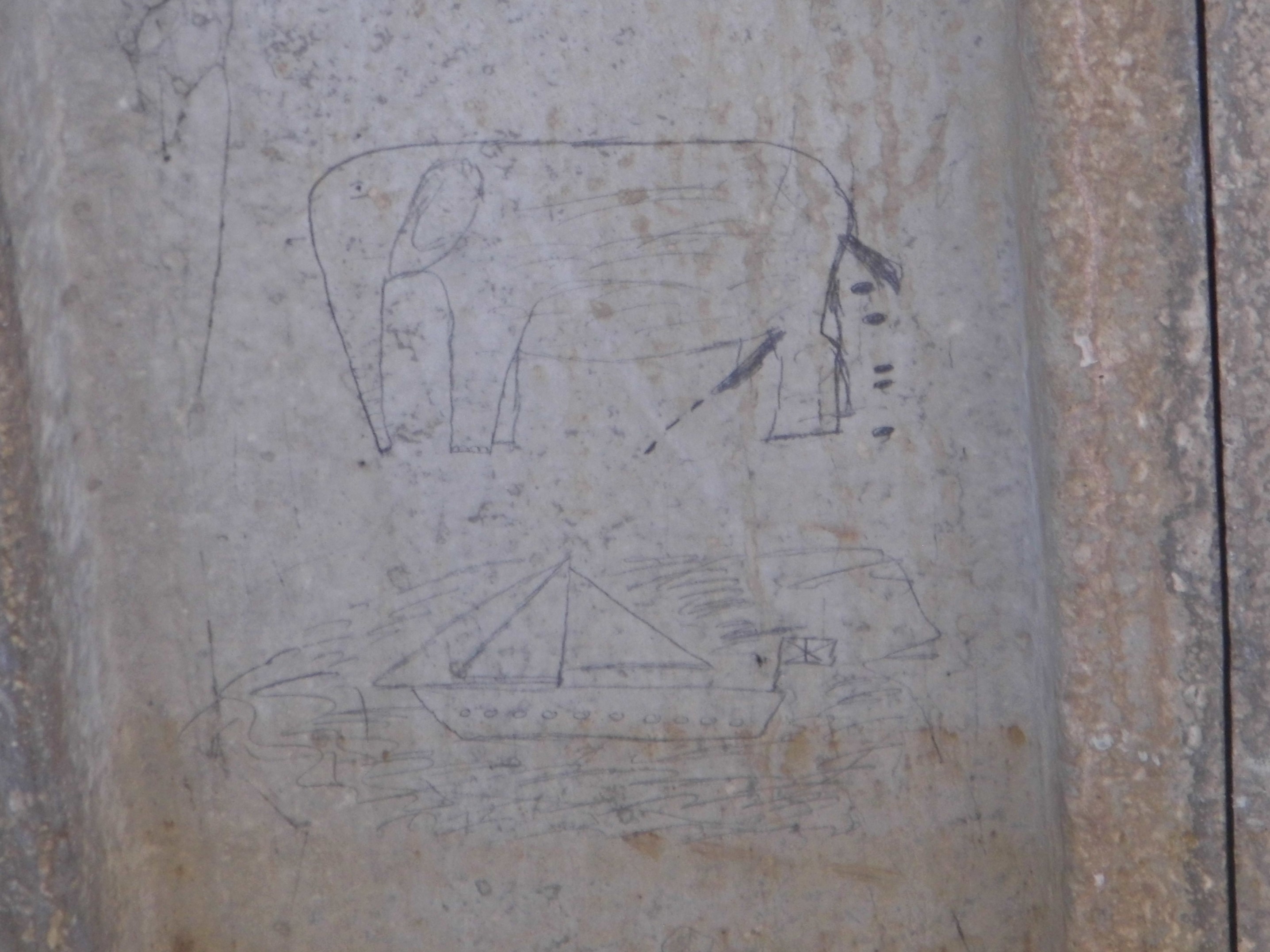 Other graffiti included noughts and crosses, ‘Nany Shepard’, a cowboy, an elephant and a sailing boat. In some of the shelters, ‘schoolboy humour’ was apparent, with drawings of genitalia, crude poems and more adult-themed graffiti, including an instruction to visit “Mabel” at an address in Leicester!