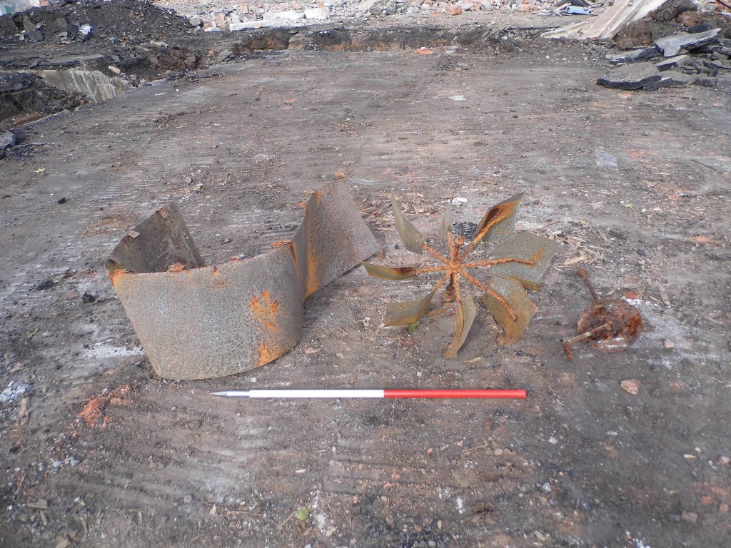 Simple electrical cable systems with Bakelite fittings ran along the roof of each tunnel and appeared to be the remains of lighting systems although no bulbs remained. A number of galvanised steel buckets were also noted, some with perforated covers, and were likely used as slop or soil buckets. No evidence of any form of seating was seen but records indicate that the shelters were fitted with wooden benches along the walls.