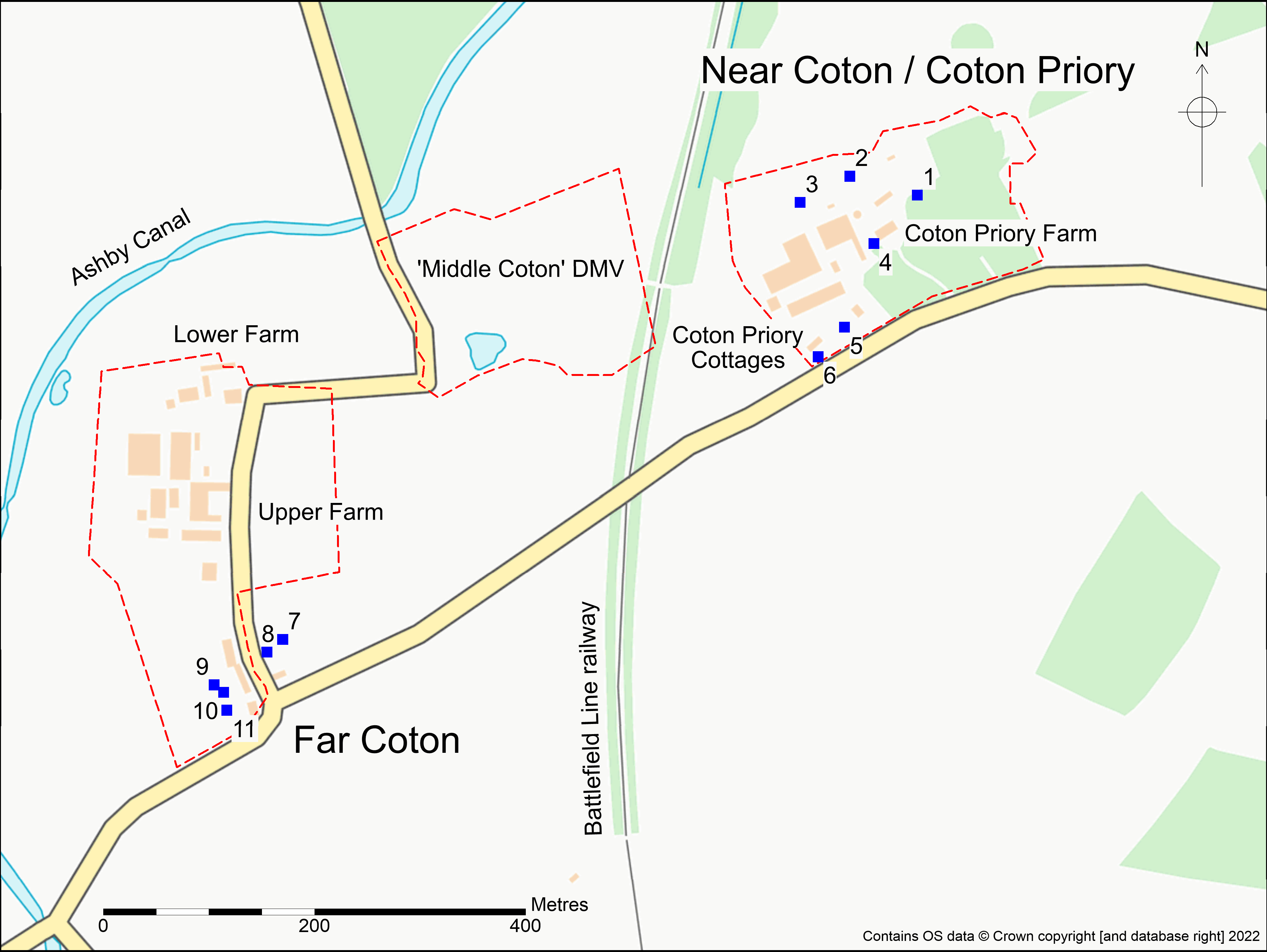 Overall, the test pits produced evidence for medieval agriculture from the 12th century onwards, and medieval occupation at Near Coton from the 15th century onwards, as well as tantalizing hints of earlier Bronze Age and Roman landscapes. The distribution of pottery from the test pits suggests that much of the area was given over to arable cultivation in the medieval period, enriched with domestic refuse, with land being given over to pasture from the 15th or 16th century onwards. At Far Coton, settlement was probably to the north of the study area in the vicinity of Upper and Lower Farm. At ‘Middle Coton’, the earthworks listed on the Historic Environment Record as deserted medieval settlement were more likely to be post-medieval field boundaries and modern earth movement, whilst at Near Coton medieval occupation did not appear to pre-date the 15th century. However, 15th century activity at Near Coton does suggest that settlement here is much earlier than previously attested, and 50-200 years earlier than the extant 17th century Coton Priory Farm.